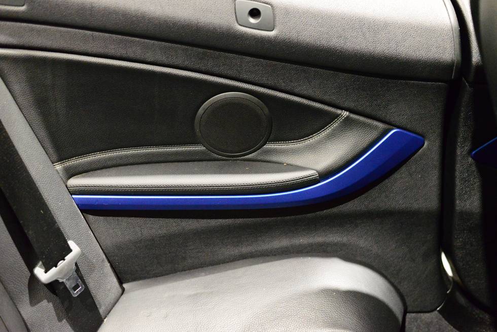 Aluminium hexagon interior trim finishers with estoril blue matt highlight
